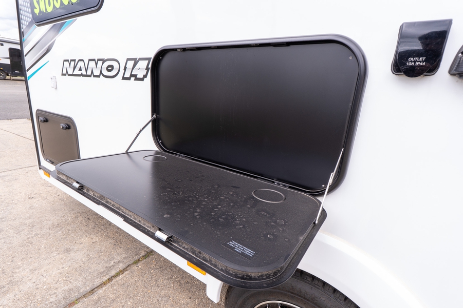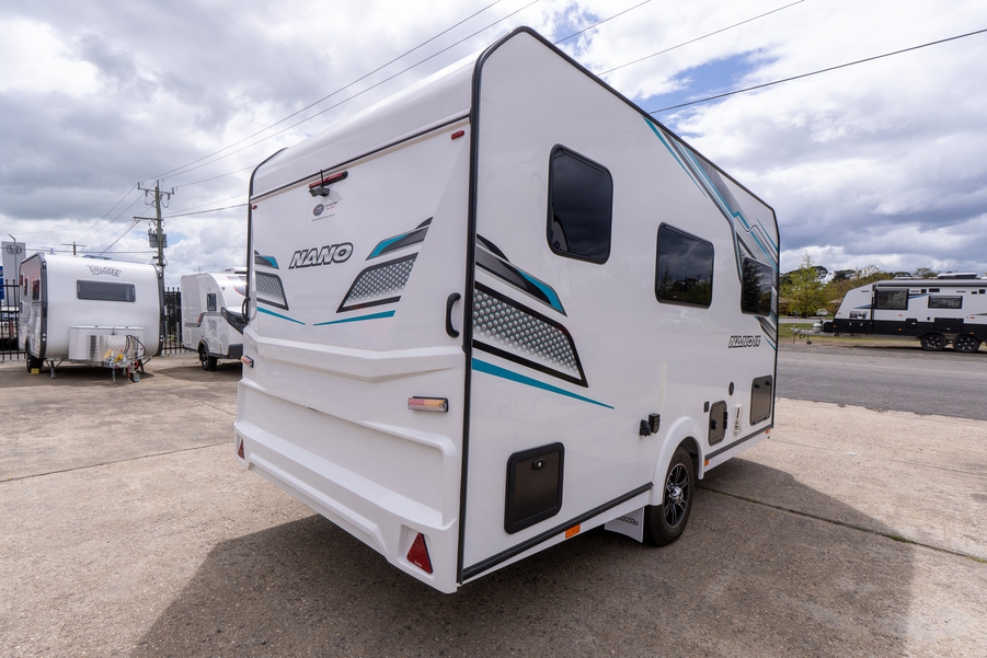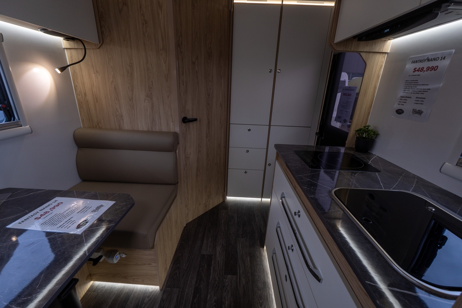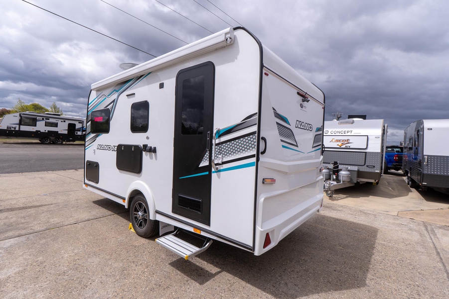 Discover the future of camping with the 2025 Fantasy Caravan Nano 14! This compact caravan expertly combines comfort and functionality, featuring a cozy double bed, versatile café seating, and a convenient drop-down table. Enjoy modern LED lighting and a fully-equipped kitchen complete with an induction cooktop, microwave, and an 85L compressor fridge. The innovative combination shower and toilet ensures you have all the essentials while on the road. With ample storage inside and out, you’ll have plenty of room for your gear. Plus, equipped with a 200W solar panel and a powerful 200Ah lithium battery, the Nano 14 is perfect for off-grid adventures. Experience the perfect getaway with the Fantasy Caravan Nano 14!