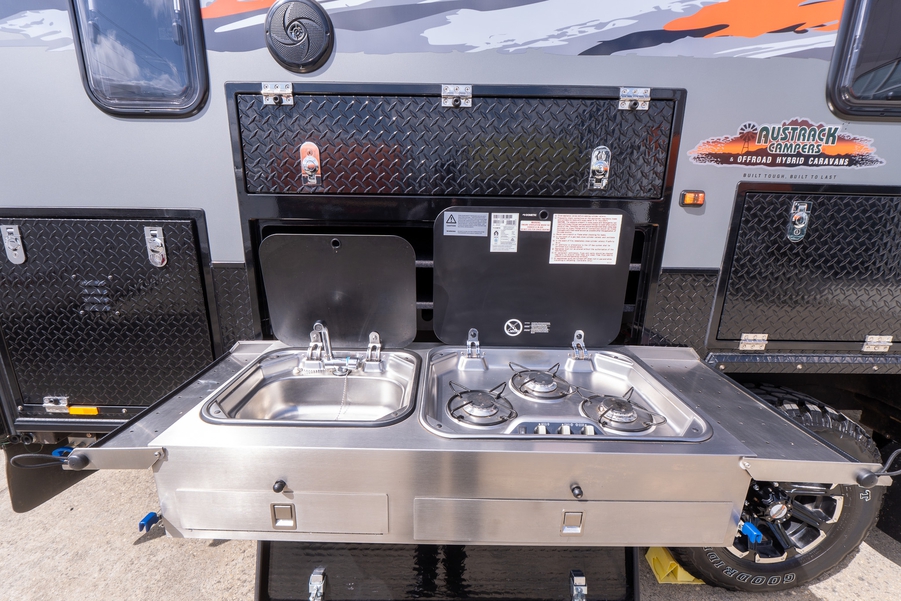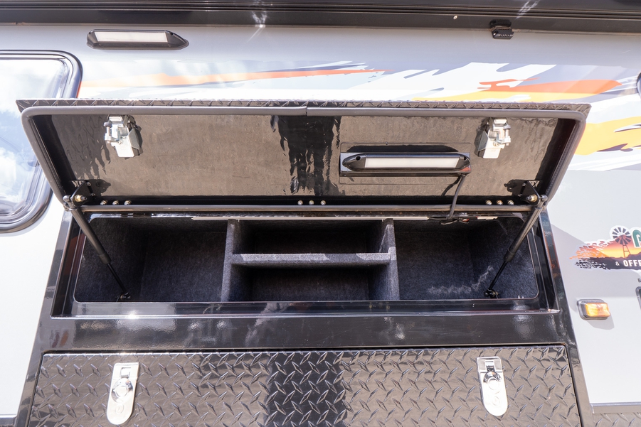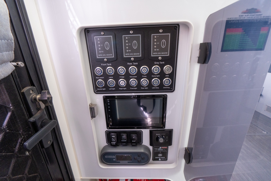 3x200w Solar Panels, 2X 9KG Gas Cylinder, AIR CONDITIONING, Annexe, ANNEXE LIGHT, Awning, Black Sink, Black tapware, Gas electric cooktop, External speakers, External Shower, Front Boot, Grey Water Tank, Hot Water System, Shower, Pullout Single Step, STEREO, Toilet, External TV box with external speakers