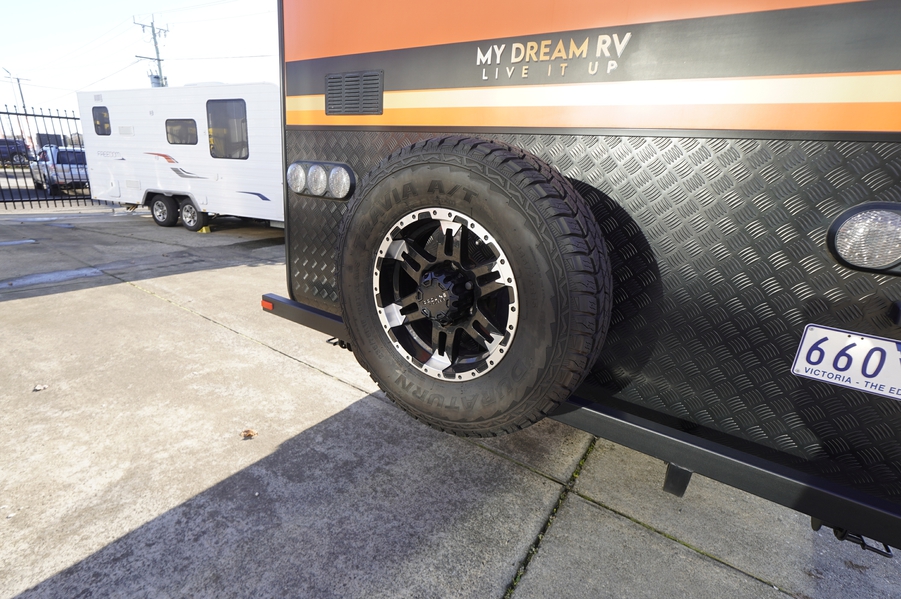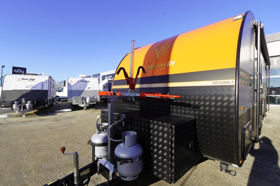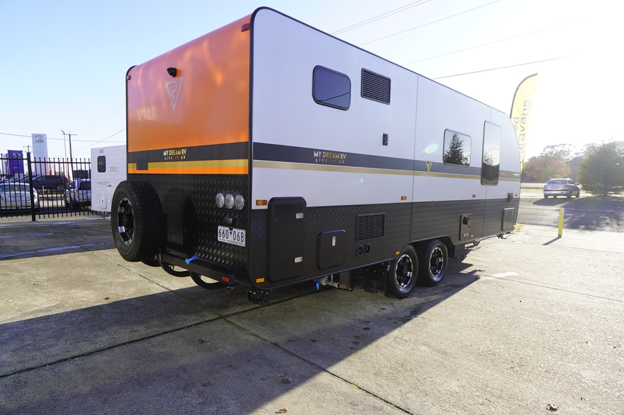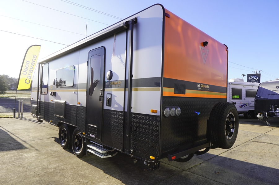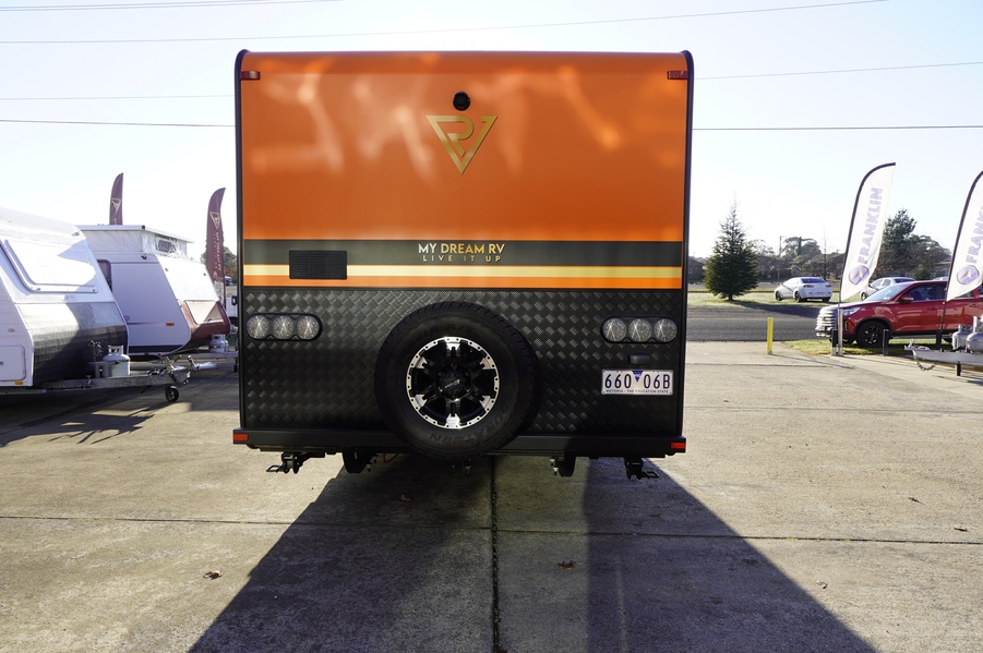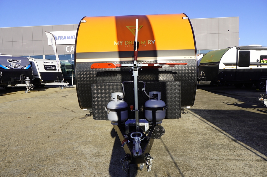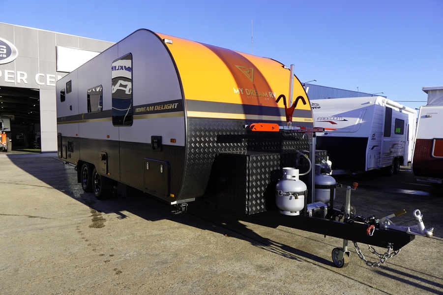 Step into your next adventure with the 2024 MY DREAM RV Dream Delight Caravan! This vibrant orange beauty combines style and functionality, featuring a cozy café-style dinette with leatherette upholstery for ultimate comfort. The spacious rear ensuite ensures privacy on the go. Built on a heavy-duty chassis equipped with leaf suspension, 15" all-terrain tires, and alloy rims, this caravan is ready for any adventure.