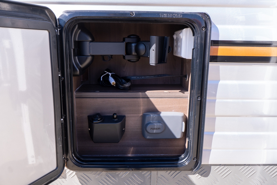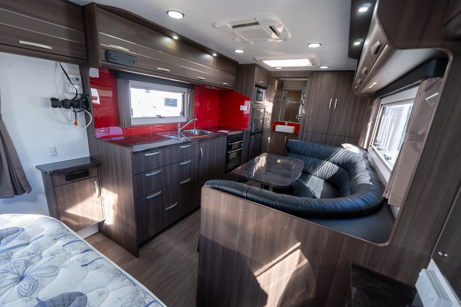 170w Solar Power, 190ltr 3 Way Dometic Fridge, 2X 9KG Gas Cylinder, AIR CONDITIONING, 2x Awning Lights, Awning, Gas electric cooktop, External speakers, 12V Fans Sirocco x2, Front Boot, Full Oven, Grey Water Tank, Hot Water System, Microfibre upgrade upholstery, Microwave, Recessed Full Oven, Recessed Stove, Shower, Pullout Single Step, STEREO, Toilet, Tunnel Boot, External TV box with external speakers, TV Antenna, Water Filter and Tap to Sink